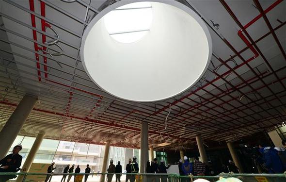 14일 오전 광주 동구 옛 전남도청 터에 건설중인 국립아시아문화전당의 복합문화관 로비에 설치한 채광정에 햇빛이 쏟아지고 있다. 문화전당은 현재 공정률 68.5%로, 내년 완공돼 2015년 개관할 예정이다. 광주/뉴시스