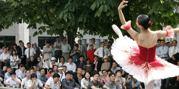 25일 낮 세종문화회관 분수대광장을 찾은 시민들이 ‘2006 가을 분수대뜨락축제-광화문 댄스 페스티벌’을 관람하고 있다. 다음달 13일까지 매일 낮 12시20분(공휴일 제외)에 열리는 분수대 뜨락축제에는 서울시무용단, 서울시뮤지컬단 등이 참여한다.